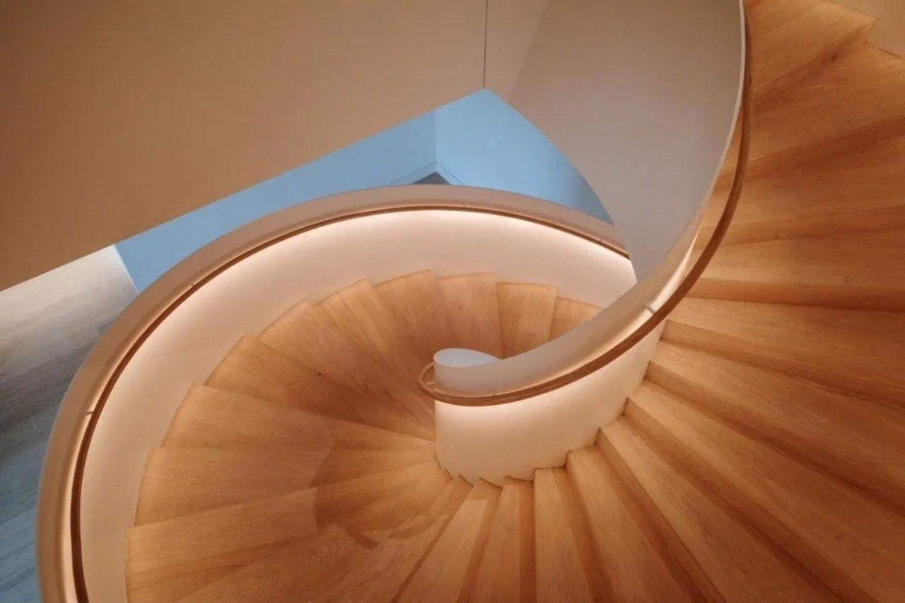 Когда лестница перестает быть просто способом перемещения и превращается в произведение искусства, интерьер обретает душу. Этот проект — воплощение смелой дизайнерской мысли: сложная геометрия, напоминающая застывшую в движении ленту, стала центральной осью всего пространства. Гармоничное сочетание теплых деревянных ступеней и футуристичной подсветки поручней создает поистине статусный и незабываемый образ.