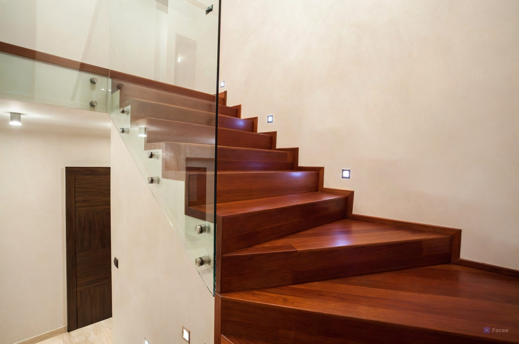 1. Придадим вашей лестнице с поворотной площадкой завершенный и гармоничный вид. Облицовка деревом сделает вашу лестницу стильной, теплой и бесшумной.